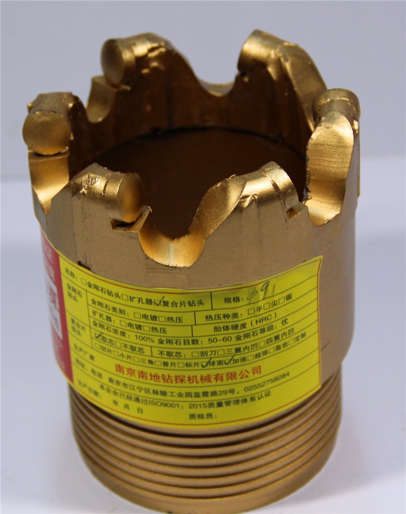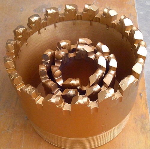 金剛石復(fù)合片取心鉆頭又有普通鉆頭(巖心管)和繩索鉆頭(配套繩索取芯鉆桿)。
