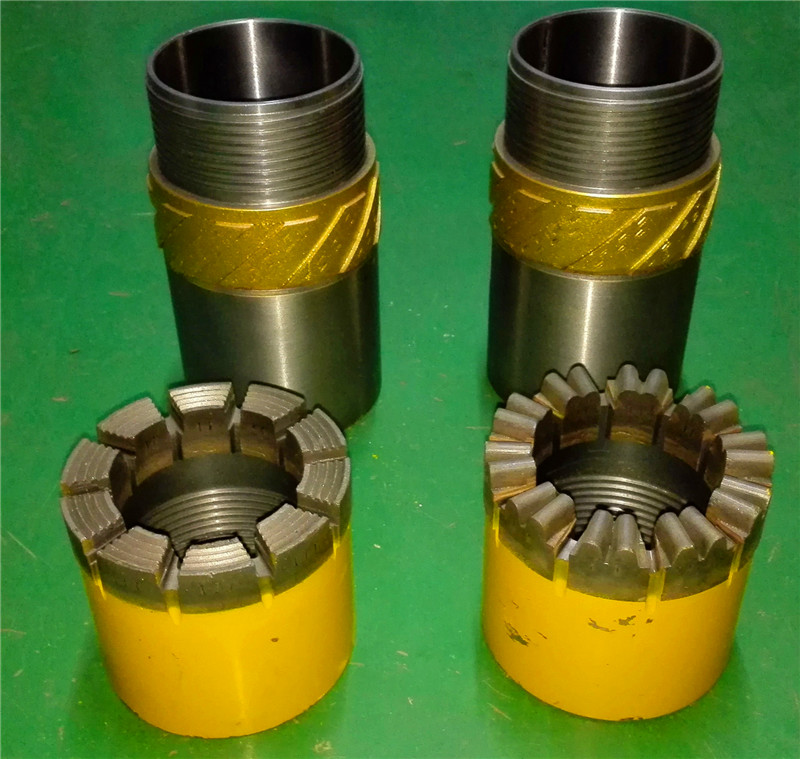 取芯鉆桿鉆具是一種不提鉆而從鉆桿內(nèi)撈取巖芯的鉆井工具。它具有鉆進(jìn)效率高,巖心采取率高,鉆頭壽命長,勞動(dòng)強(qiáng)度小等優(yōu)點(diǎn)。隨著鉆孔深度的加深,其優(yōu)勢更為明顯。整套鉆具包括鉆具總成、鉆桿、加厚鉆桿、提引器、打撈器、夾持器、電動(dòng)或柴油機(jī)驅(qū)動(dòng)繩索絞車和金剛石自由鉗等部件。