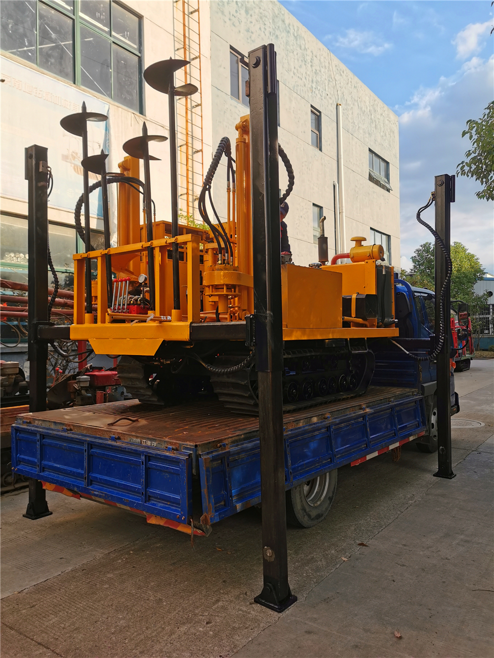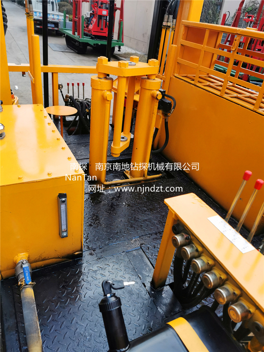 NTLPSY-L8-20T-SG型履帶靜力觸探車由自行走履帶底盤、1臺四缸柴油機、20T液壓靜探機、自動伸縮式升高型上下車液壓支撐腿系統(tǒng)、2組液壓下錨機、控制器、平臺及駕駛機構等組成,共同組裝在一個機架上。