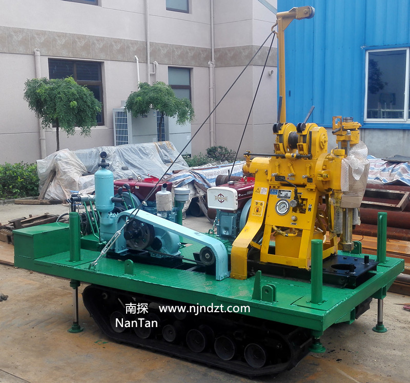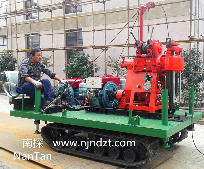 該履帶底盤(pán)承載重量達(dá)4T,可以裝載各種小型鉆機(jī),如:XY-1-1、XY-1、XY-1A、XY-1A(YJ)、XY-1A-4、XY-1A-5、XY-1B、XY-1B-1、XY-1B-2、XY-200、XY-200(YJ)、XY-200B、XY-200B-1、XY-200B-2、GXY-1系列、GXY-2Q、GXY-200B、GYQ-200、GYQ-200A、GK180、GXY-2K、GXY-2C等100-300米鉆機(jī),并可同時(shí)裝載BW160、BW160A、BW200或BW200A型泥漿泵,具有利用鉆機(jī)卷?yè)P(yáng)機(jī)起落鉆塔、行走方便等特點(diǎn),廣泛適用于公路、鐵路、水電、橋梁、壩基等的工程地質(zhì)勘察、地質(zhì)巖芯鉆探、物理勘察、小型灌漿孔、爆破孔、水井孔和空調(diào)孔的鉆進(jìn)。