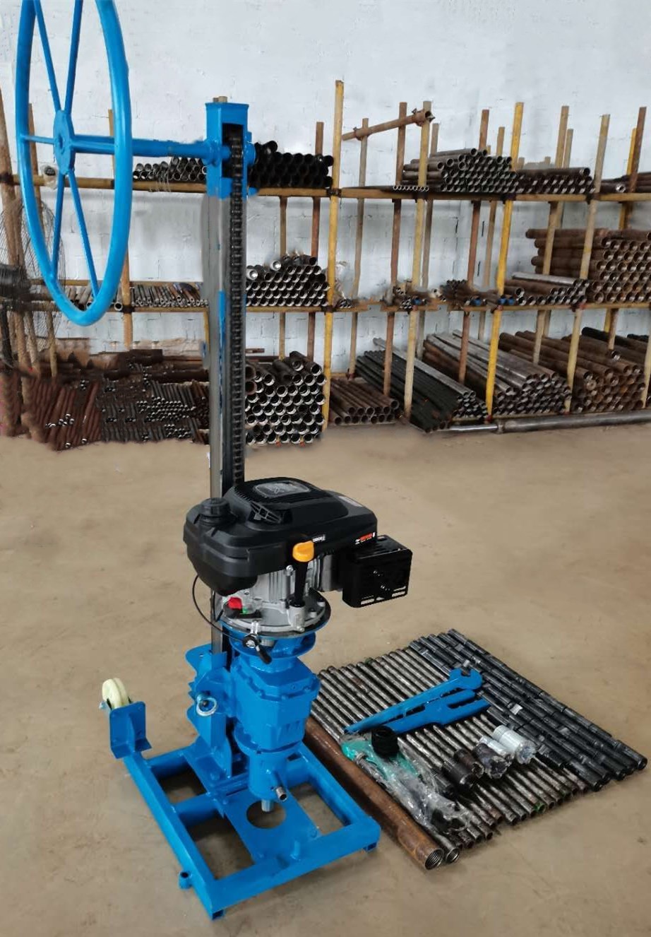 可以2人操作的取芯鉆機!鉆探深度可達20米!采用輕便的汽油機(或柴油機可選)作為動力,分體式輕便實用,帶兩輪搬遷十分便利,帶支架穩(wěn)定可靠,滿足野外車輛無法進入地區(qū)時用;鉆機操作簡單,易學(xué)易懂??蓪崿F(xiàn)合金鉆頭、復(fù)合片鉆頭、金剛石鉆頭取樣鉆進,也可以實現(xiàn)麻花螺旋鉆進、三葉合金鉆頭、復(fù)合片不取芯鉆頭等不取芯鉆孔鉆進的需求。