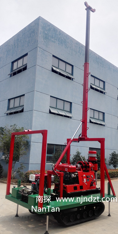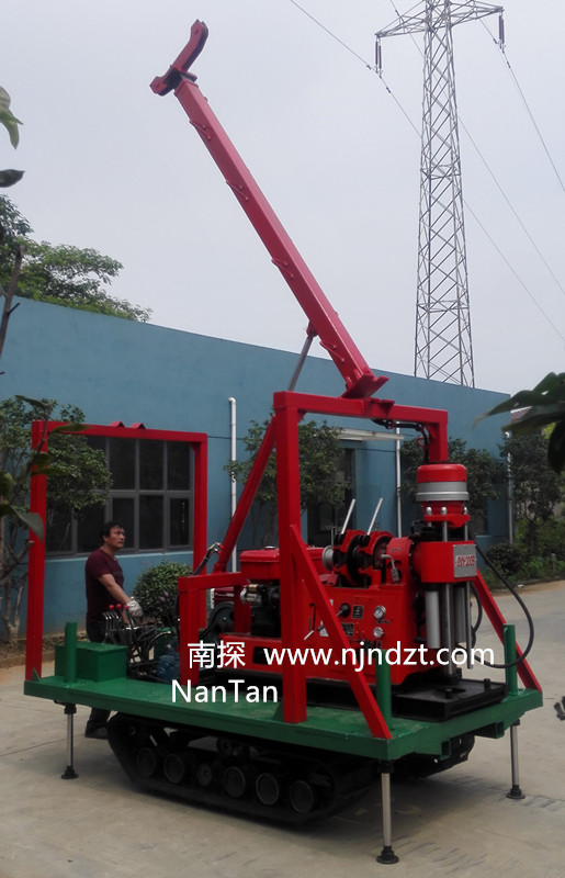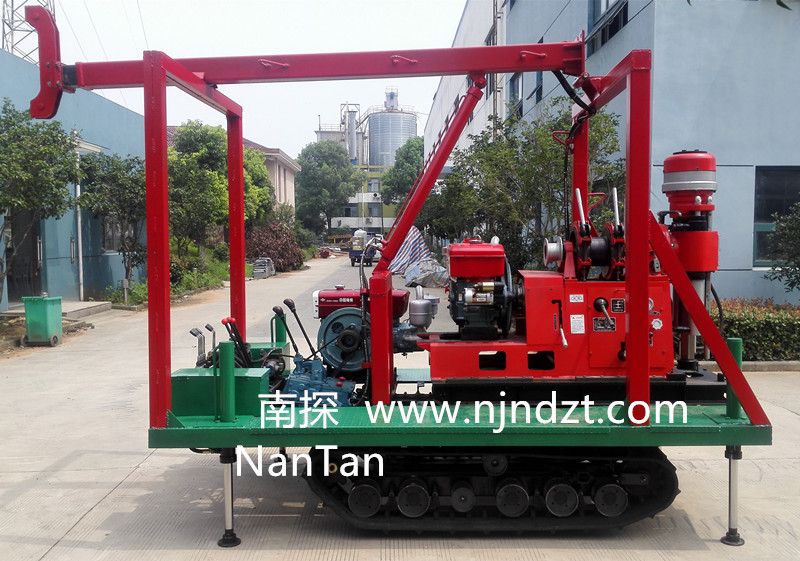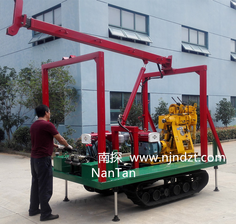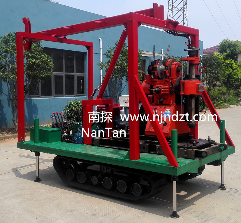該履帶底盤承載重量達4T,可以裝載各種小型鉆機,如:XY-1-1、XY-1、XY-1A、XY-1A(YJ)、XY-1A-4、XY-1A-5、XY-1B、XY-1B-1、XY-1B-2、XY-200、XY-200(YJ)、XY-200B、XY-200B-1、XY-200B-2、GXY-1系列、GXY-2Q、GXY-200B、GYQ-200、GYQ-200A、GK180、GXY-2K、GXY-2C等100-300米鉆機,并可同時載BW160、BW160A、BW200或BW200A型泥漿泵,具有可調(diào)伸縮式液壓起落鉆塔、行走方便等特點,廣泛適用于公路、鐵路、水電、橋梁、壩基等的工程地質勘察、地質巖芯鉆探、物理勘察、小型灌漿孔、爆破孔、水井孔和空調(diào)孔的鉆進。